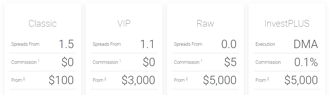 - Compte classique : spreads à partir de 1,5 pips, sans commission (dépôt dès 100 $)